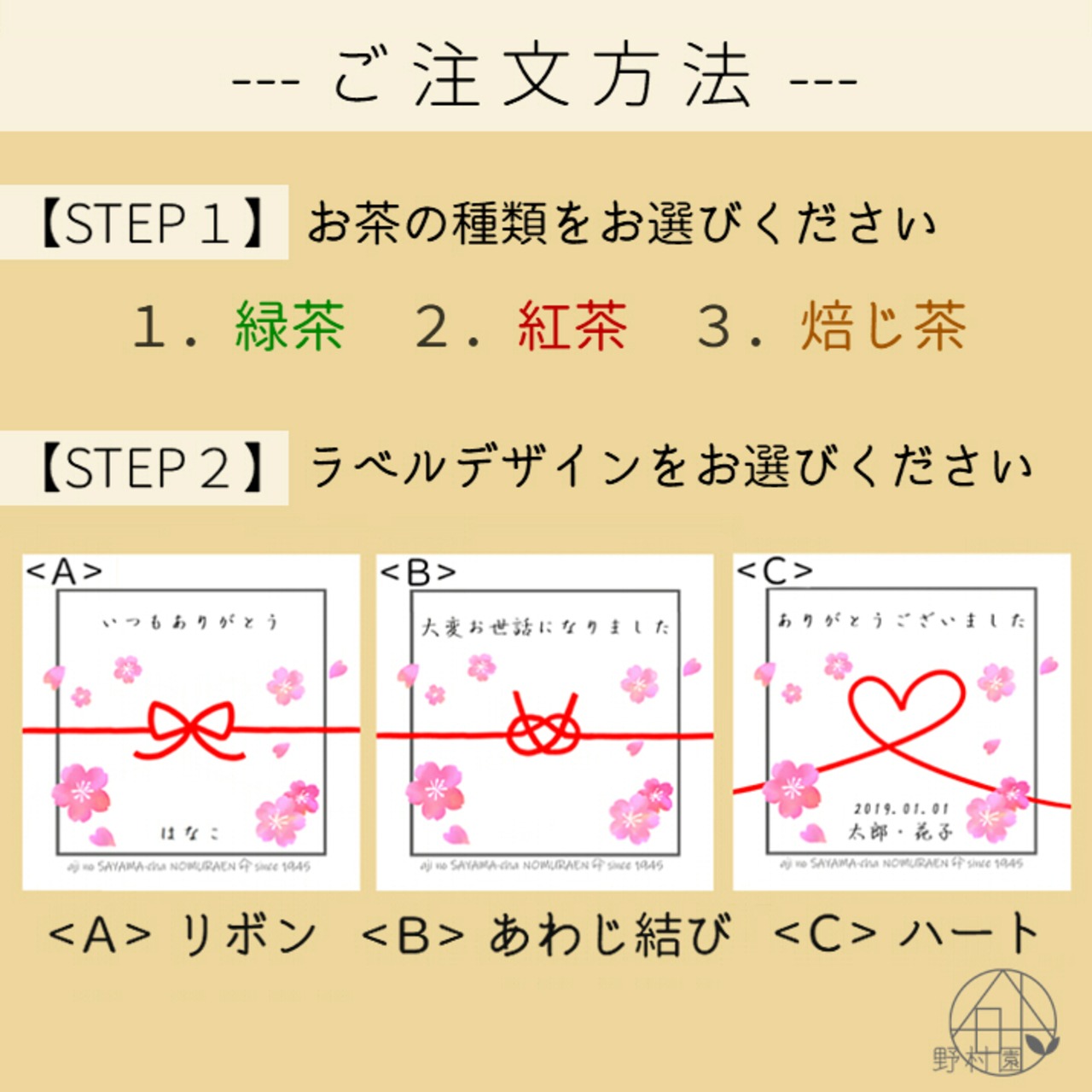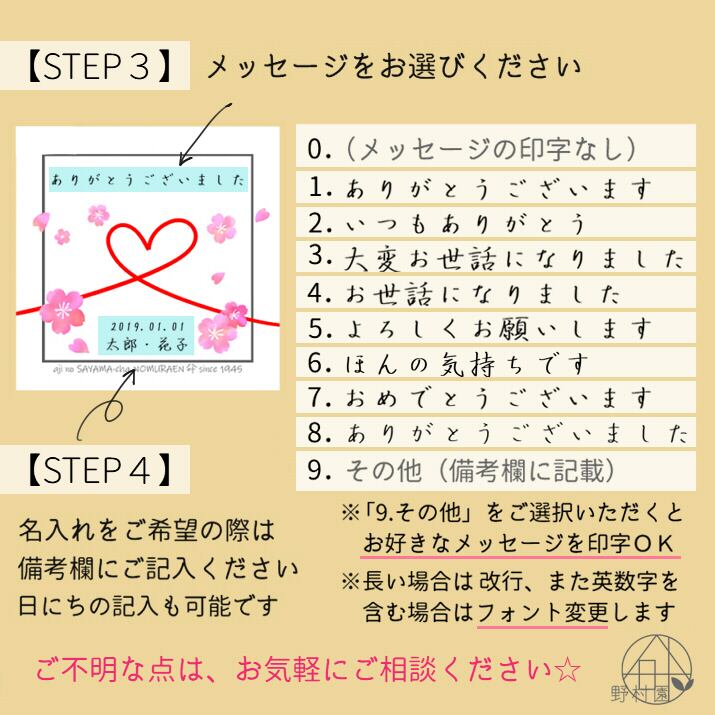 野村園オリジナルのメッセージ&名入れ