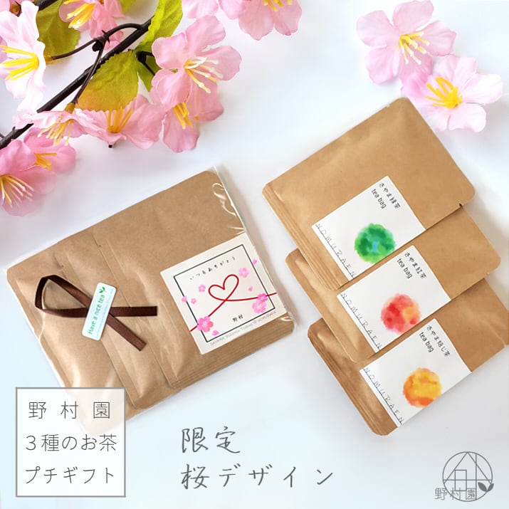【名入れ&メッセージ】3種のさやま茶プチギフト《限定・桜デザイン》/緑茶・紅茶・焙じ茶